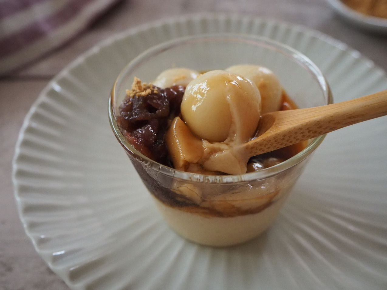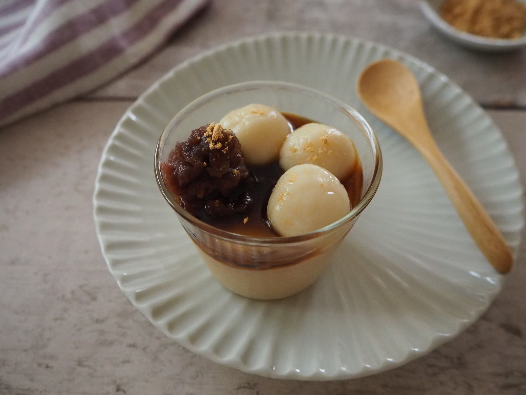 きな粉プリンのお豆腐白玉のせ