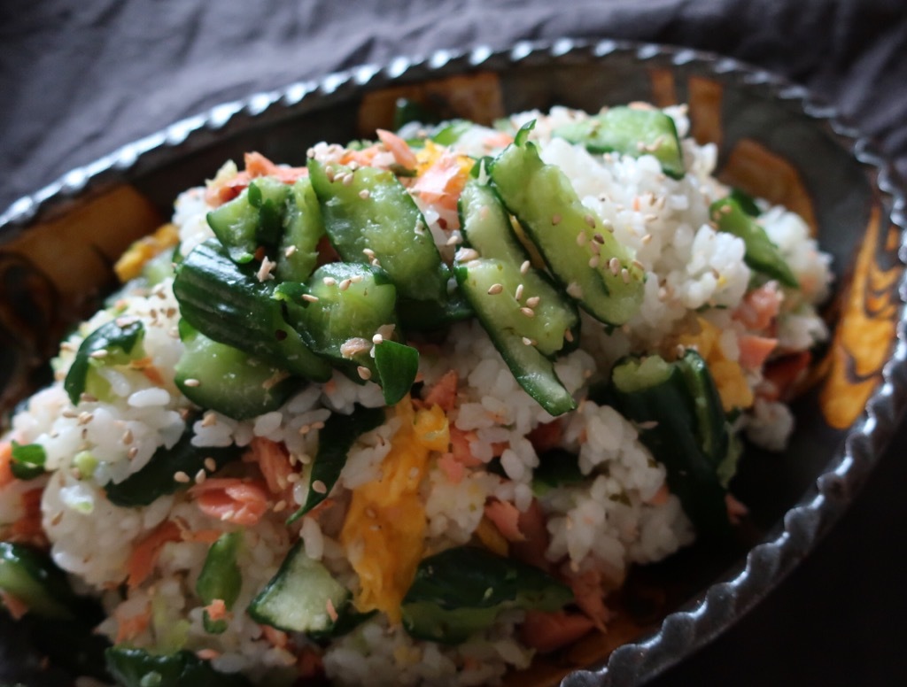 たっぷりのきゅうりを柚子胡椒のお漬物にしてご飯に混ぜ合わせました。夏バテ気味でも食が進みます。