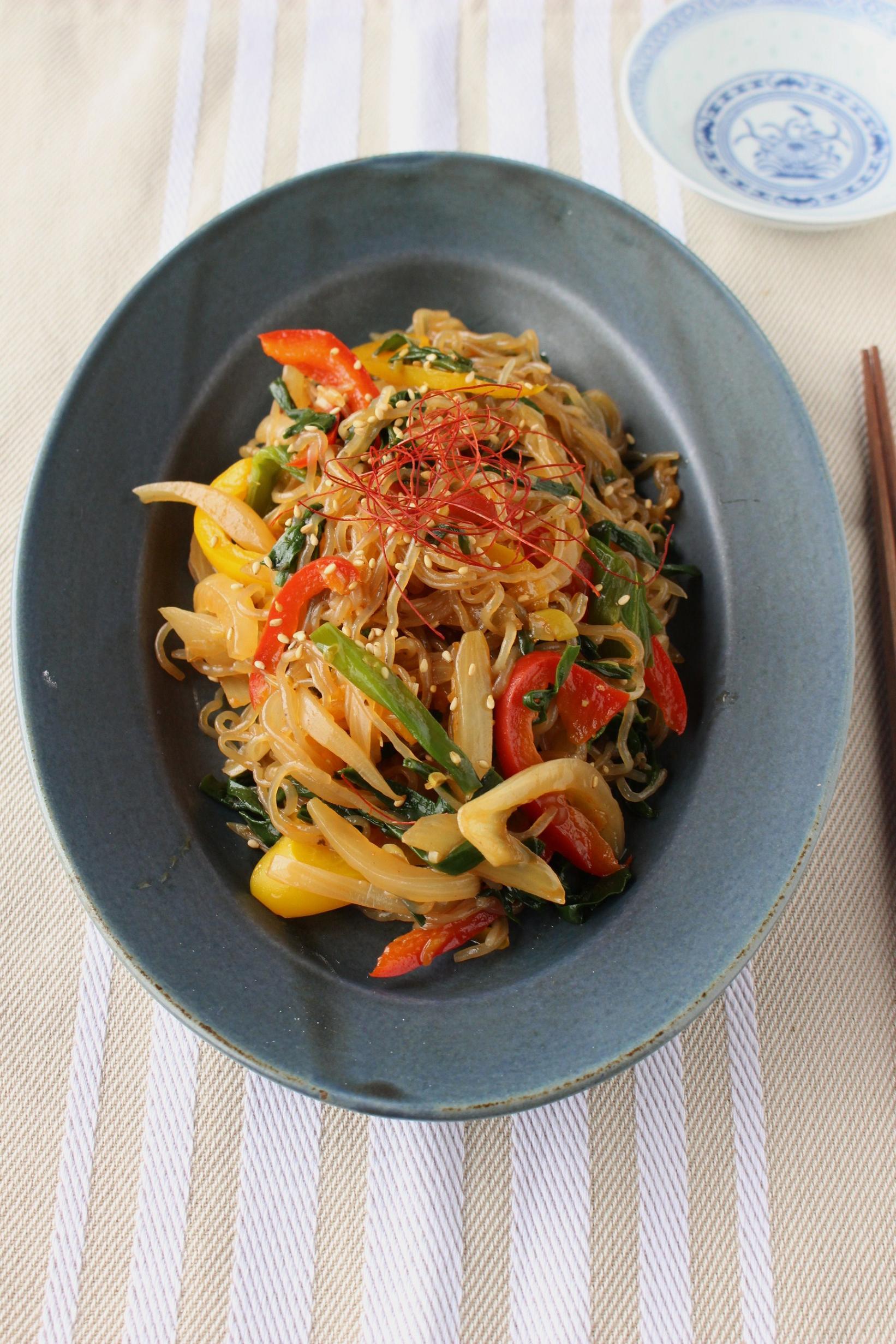 こんにゃくで作るヘルシーなチャプチェ。こんにゃくをしっかり炒めることで、余分な水分が飛び食感もよくなります。コチュジャンベースのしっかりとした味わいは、冷めても美味しいひと品。お好みの野菜やお肉を加えて作っても美味しくいただけます。