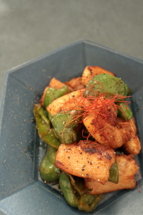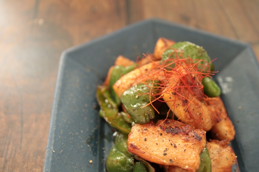 - 器に盛り、黒胡椒をかけ糸唐辛子を添える。