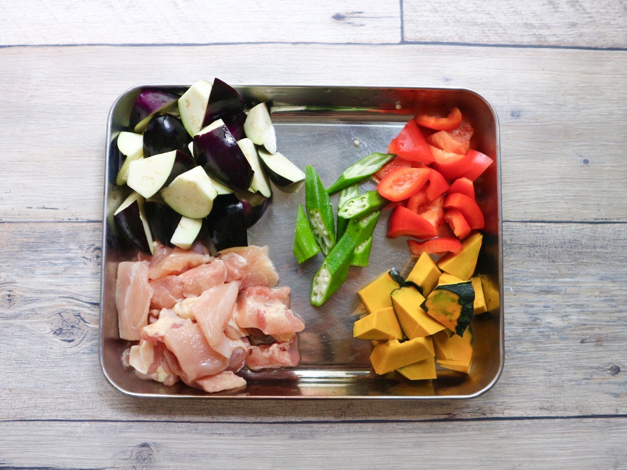 鶏もも肉は一口大、その他の野菜は好みの大きさに切る。