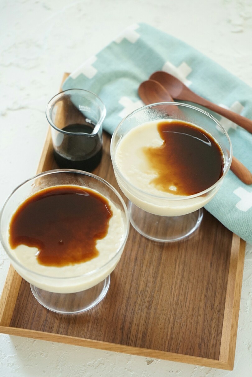- 茶漉しでこしながら器に入れ、冷蔵庫で3~4時間固まるまで冷やす。お好みで黒蜜やメープルシロップをかける。