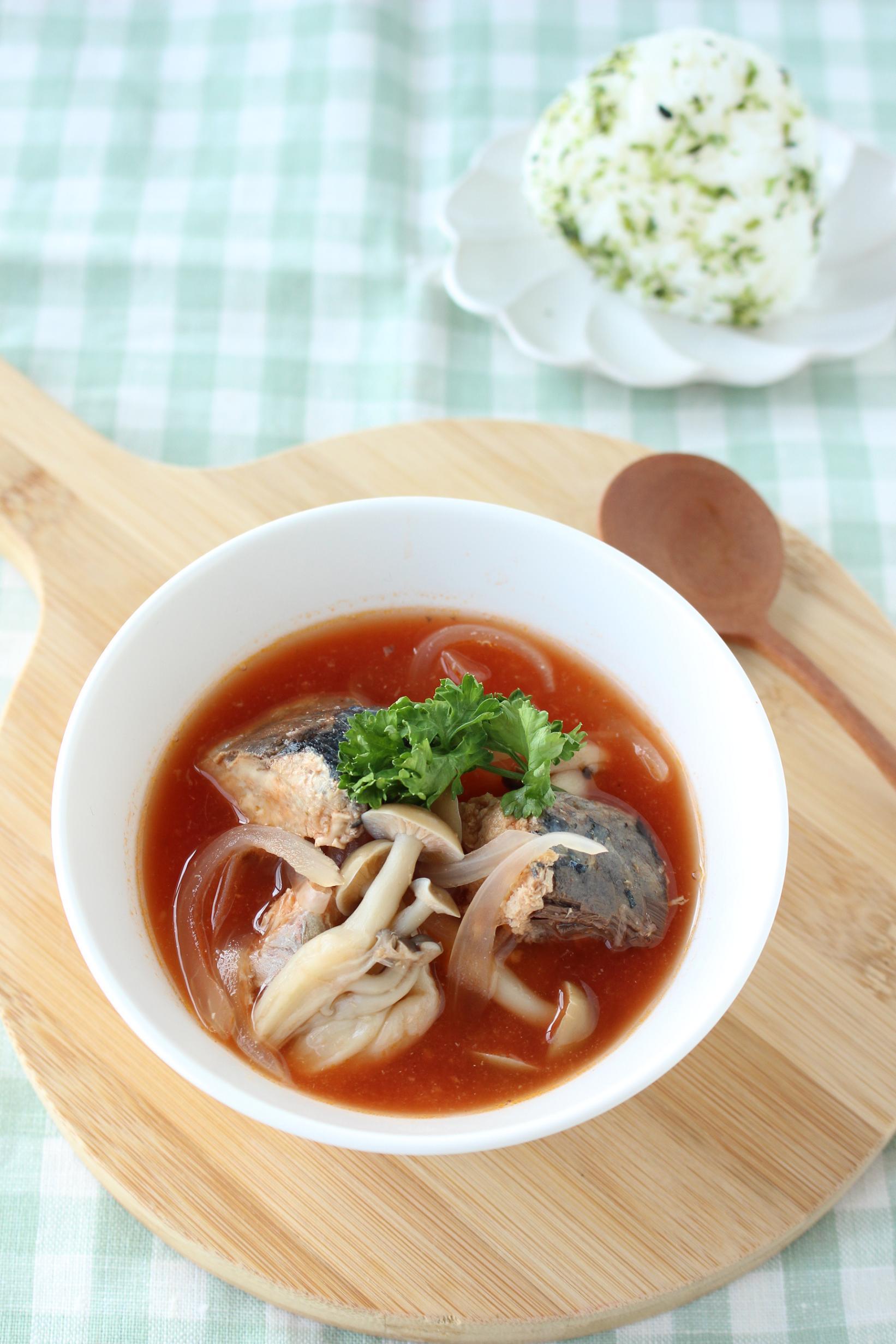 鍋に入れて煮るだけ!さばとトマトのダブルの旨味でだし要らず!お手軽食材のさば缶とトマトジュースで作る簡単おかずスープ。ご飯にも合う「味噌」の味付けで、食べ応えのある旨味たっぷりのおかずスープです。