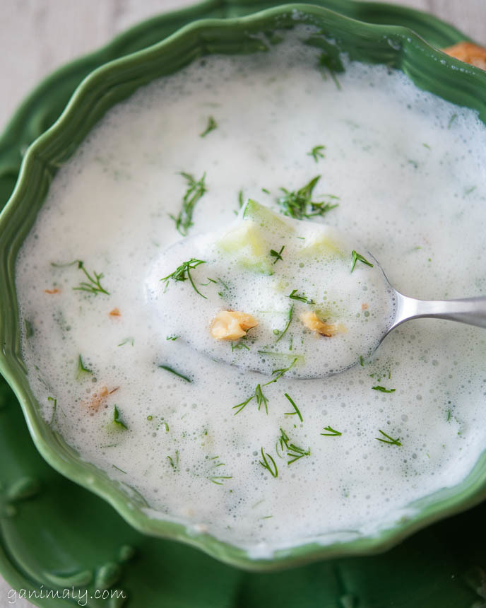 暑いひにおいしいブルガリアのヨーグルトの冷たいスープ。きゅうりとディルが爽やかです。クルミの栄養素もうれしいし、ちょっとだけ入れるニンニクも。ニンニクの香りはヨーグルトで気にならなくなります。