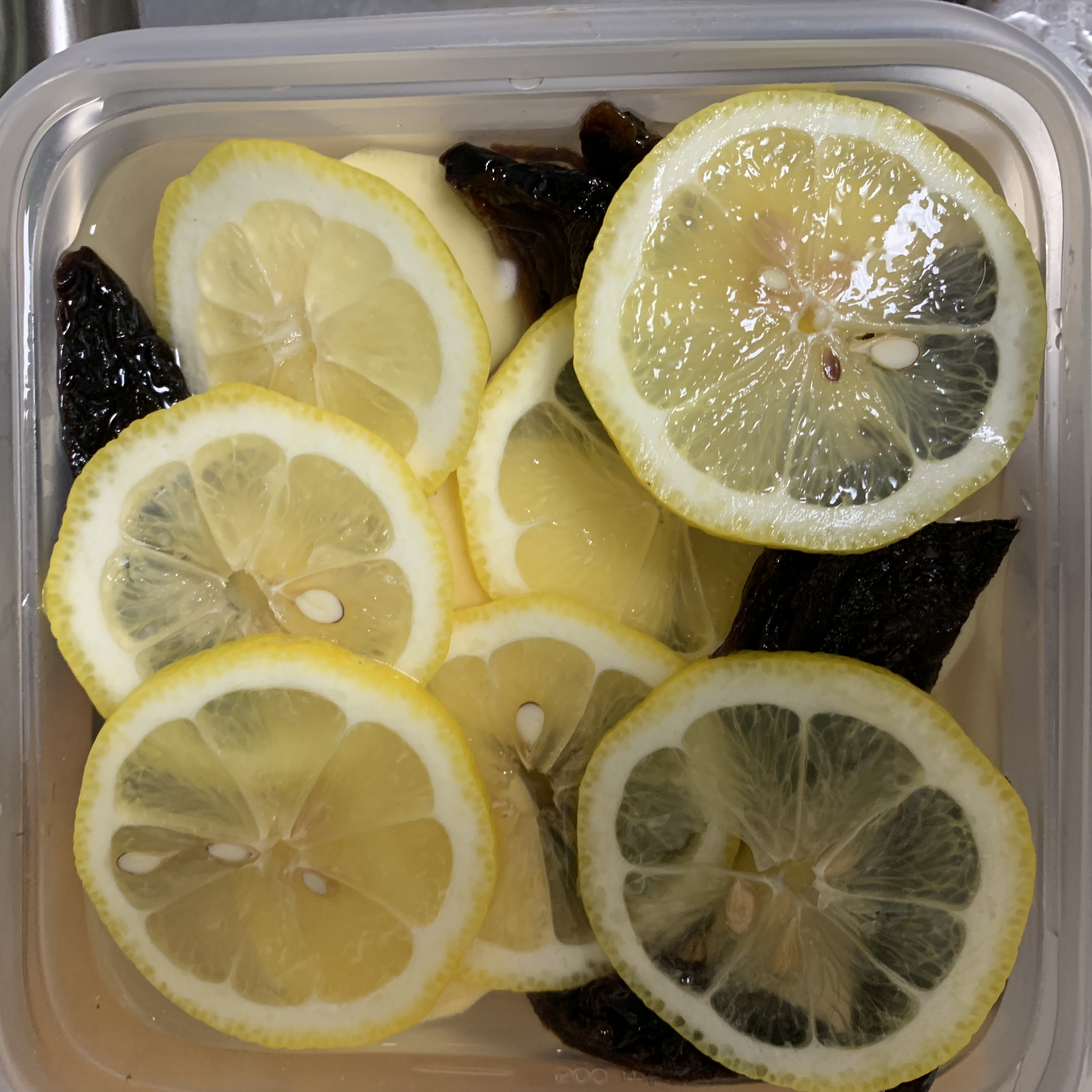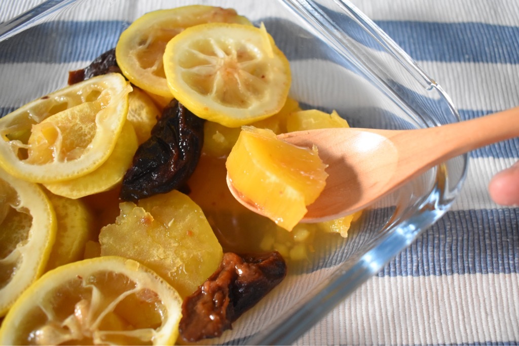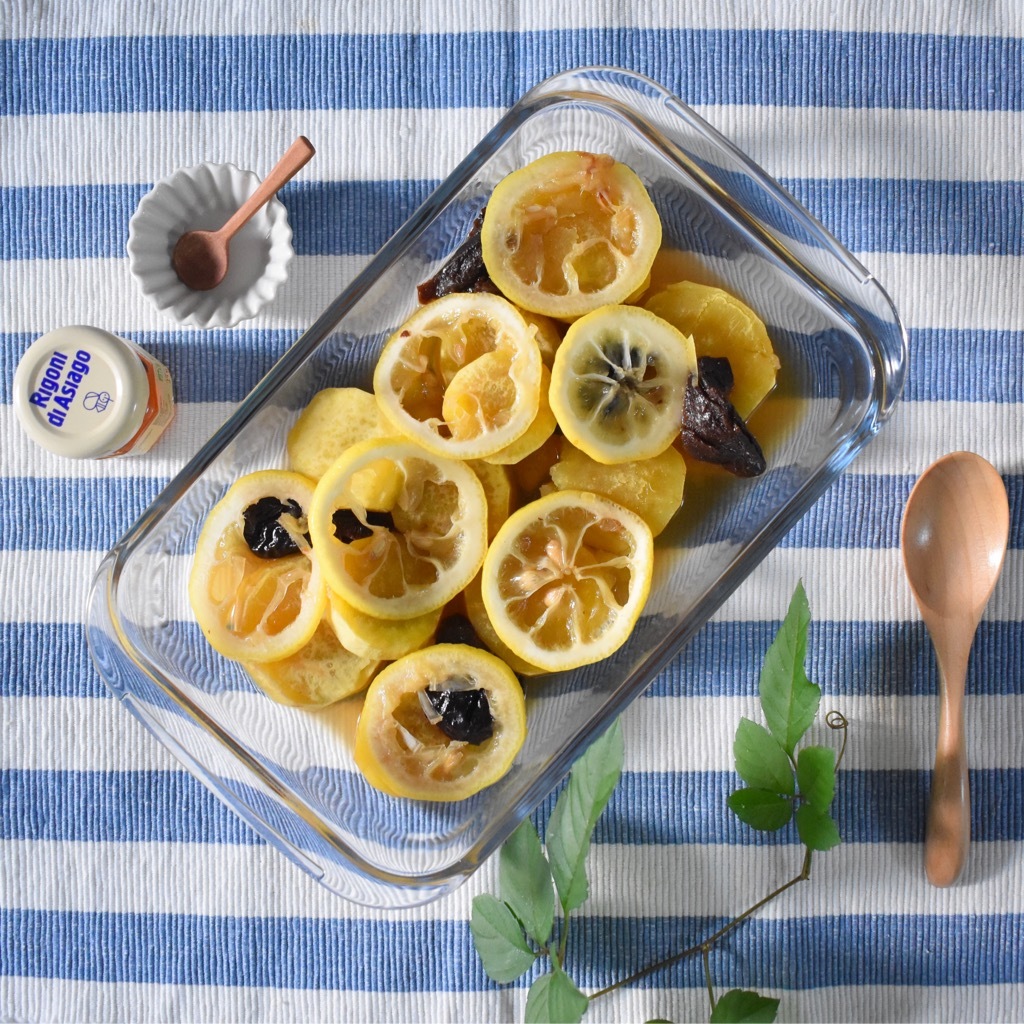 プルーン、レモンを入れ、はちみつをかける。