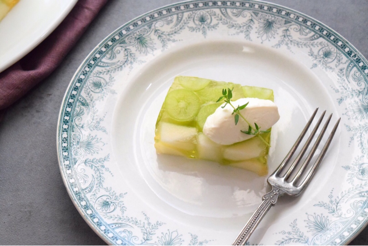 - 型から外し切り分けて、お好みでマスカルポーネチーズ、タイムを飾る。