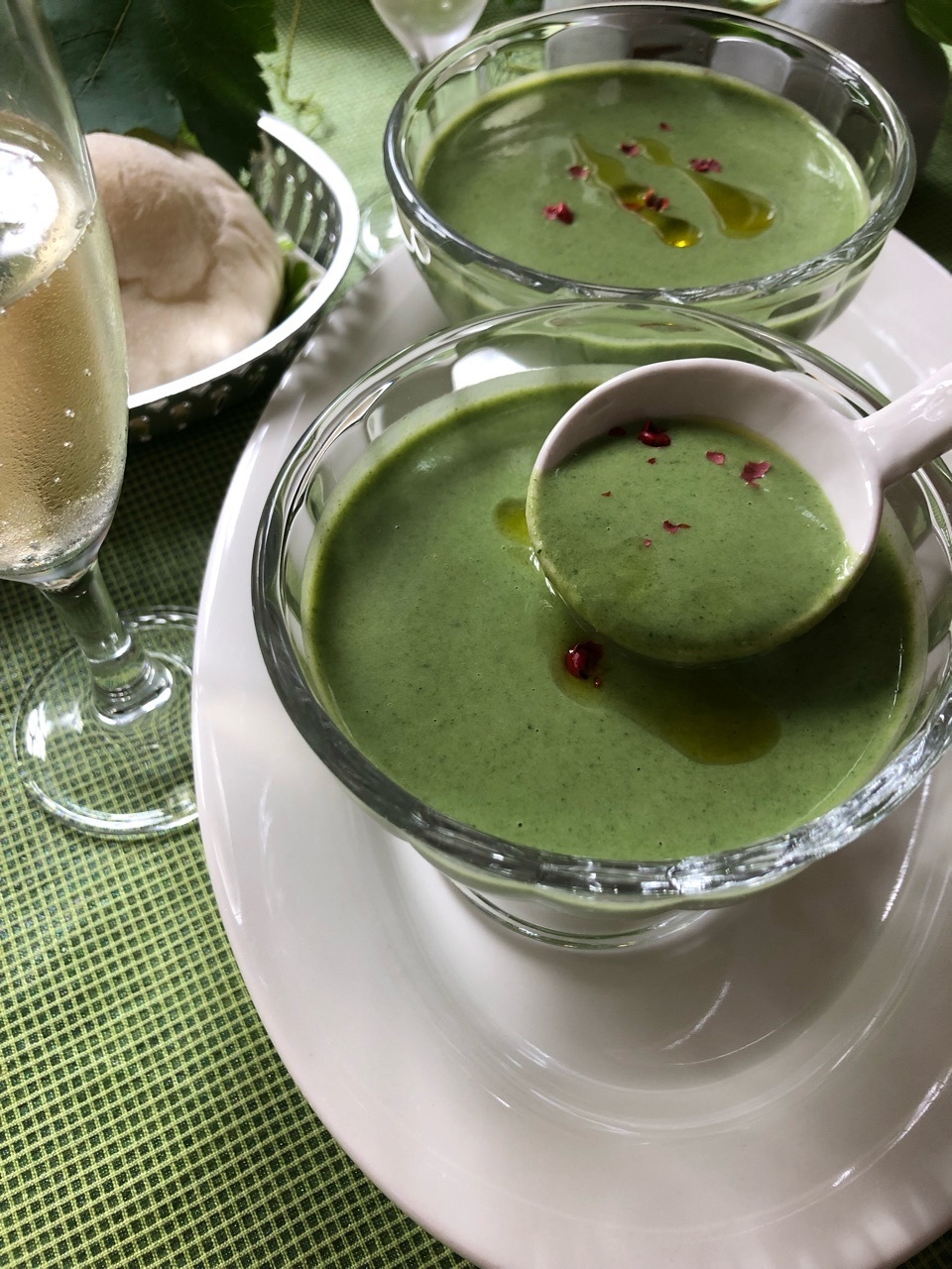 たっぷりの緑野菜の美味しさを、オリーブオイルと塩でシンプルに味わえるポタージュスープです。
