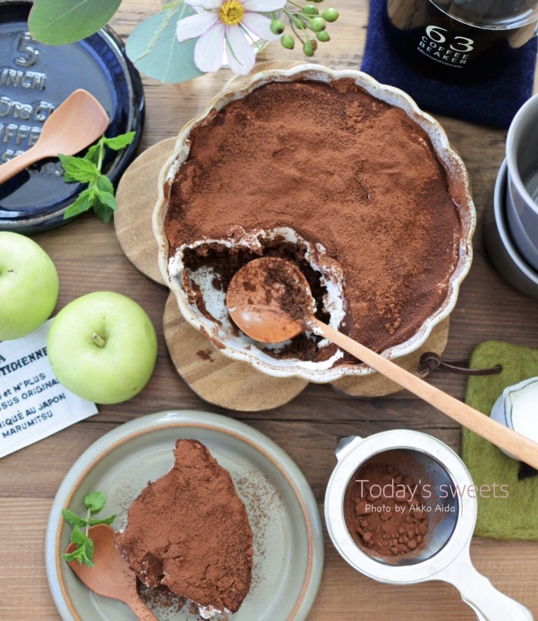 大きな器に作る取り分けスタイルのティラミスのスタイリングです。