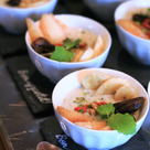 器に②のスープを注ぎ、全ての材料をトッピングする。
