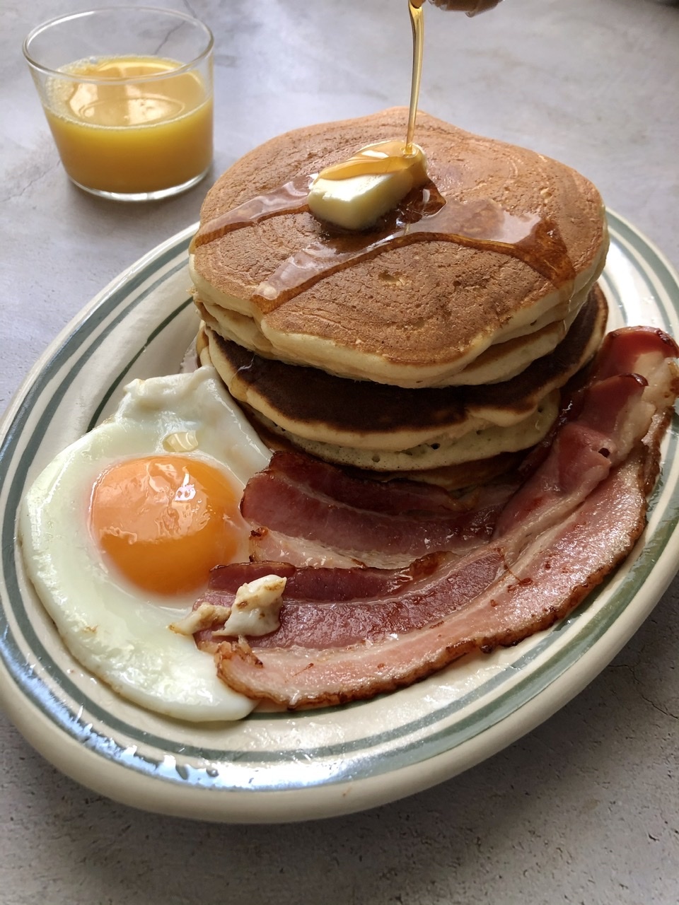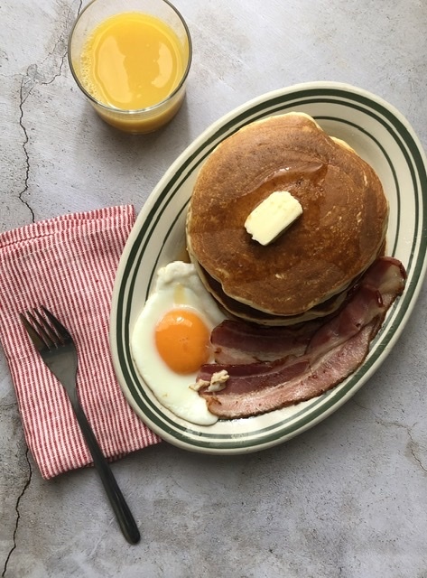 海外の朝食をイメージしたベーコンエッグパンケーキです。