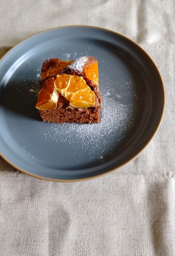 - ⑥ ③を型に流し、輪切りにしたみかんを敷き詰めて並べ、オーブンで30分焼く。