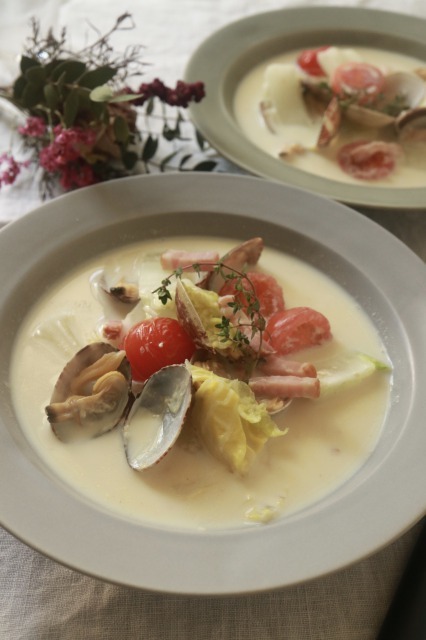あさりと白菜の豆乳スープ