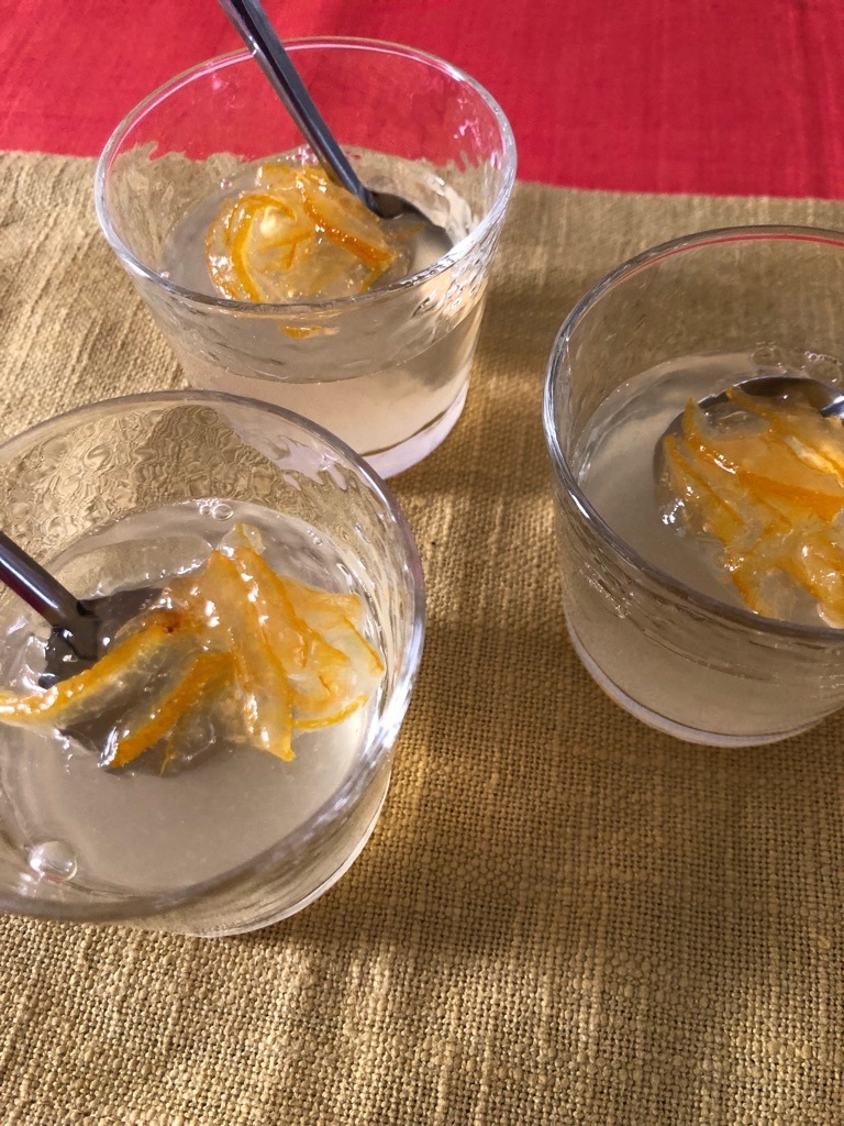 ぷるんぷるんのゆずマーマレードを使ったゼリー♪ 柚子とりんごの組み合わせ、とっても合いますし、ゆずマーマレードがないとき、オレンジマーマレード、レモンマーマレードでもときもちろんgood!お好きないろんなジャムでお楽しみください(๑>◡<๑)
