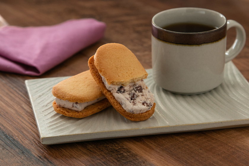 サンドに小豆を使用しているので、クロスを小豆色にしてポイントに。