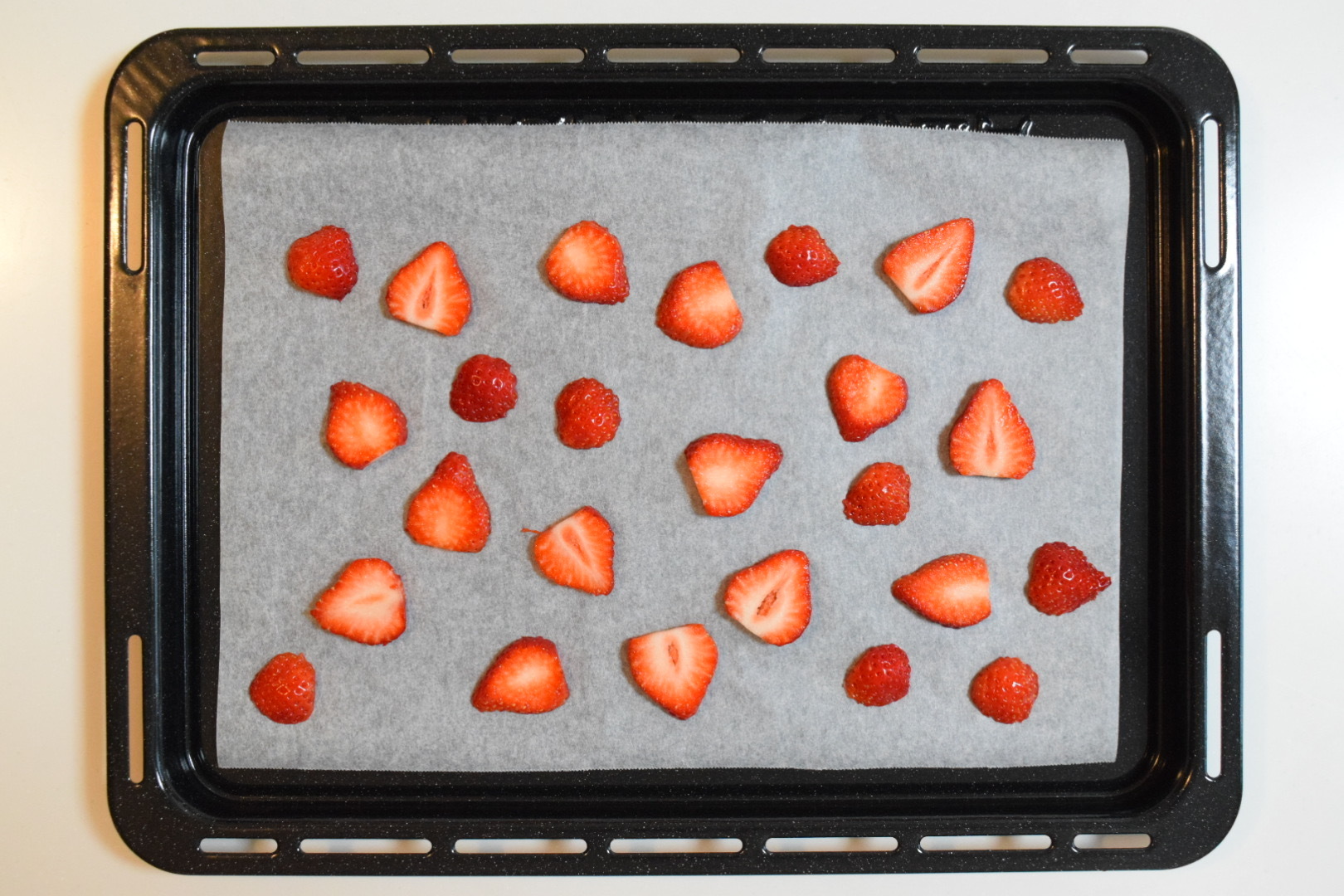 イチゴ全体が乾燥したら天板に乗せた状態で粗熱を取る。