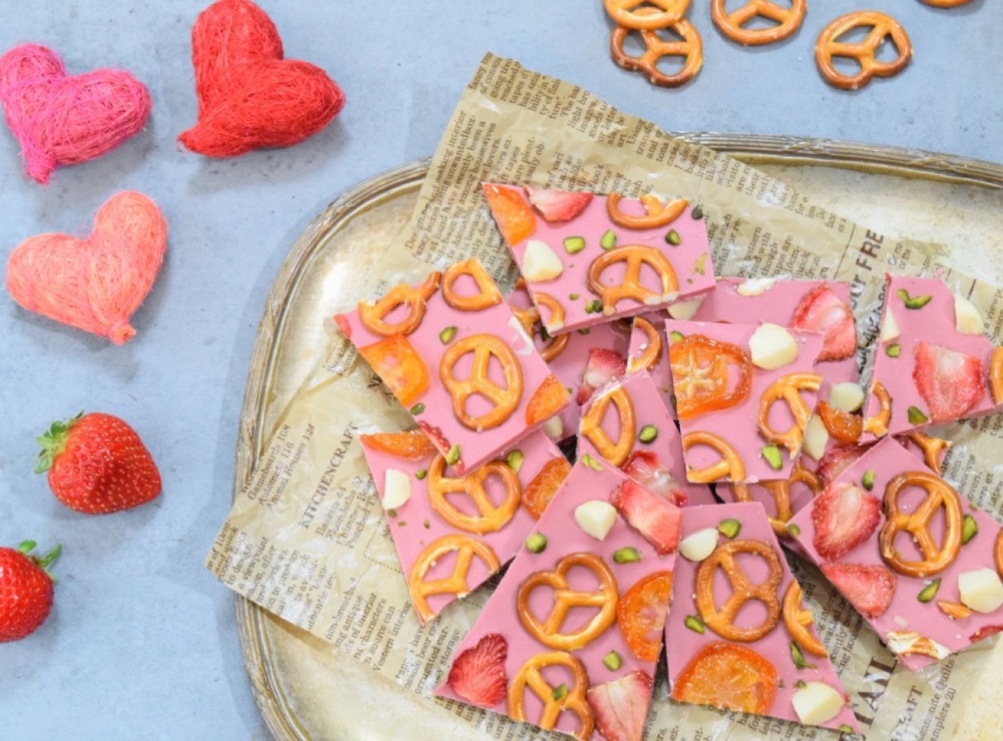 第4のチョコレートとして話題のルビーチョコレートを使って可愛いタブレットチョコに。