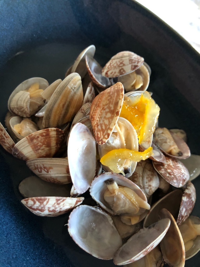 アサリの酒蒸しちょっぴり柚子マーマレードかけ