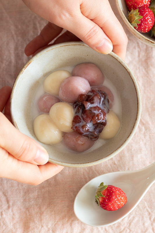 豆乳と苺の白玉団子