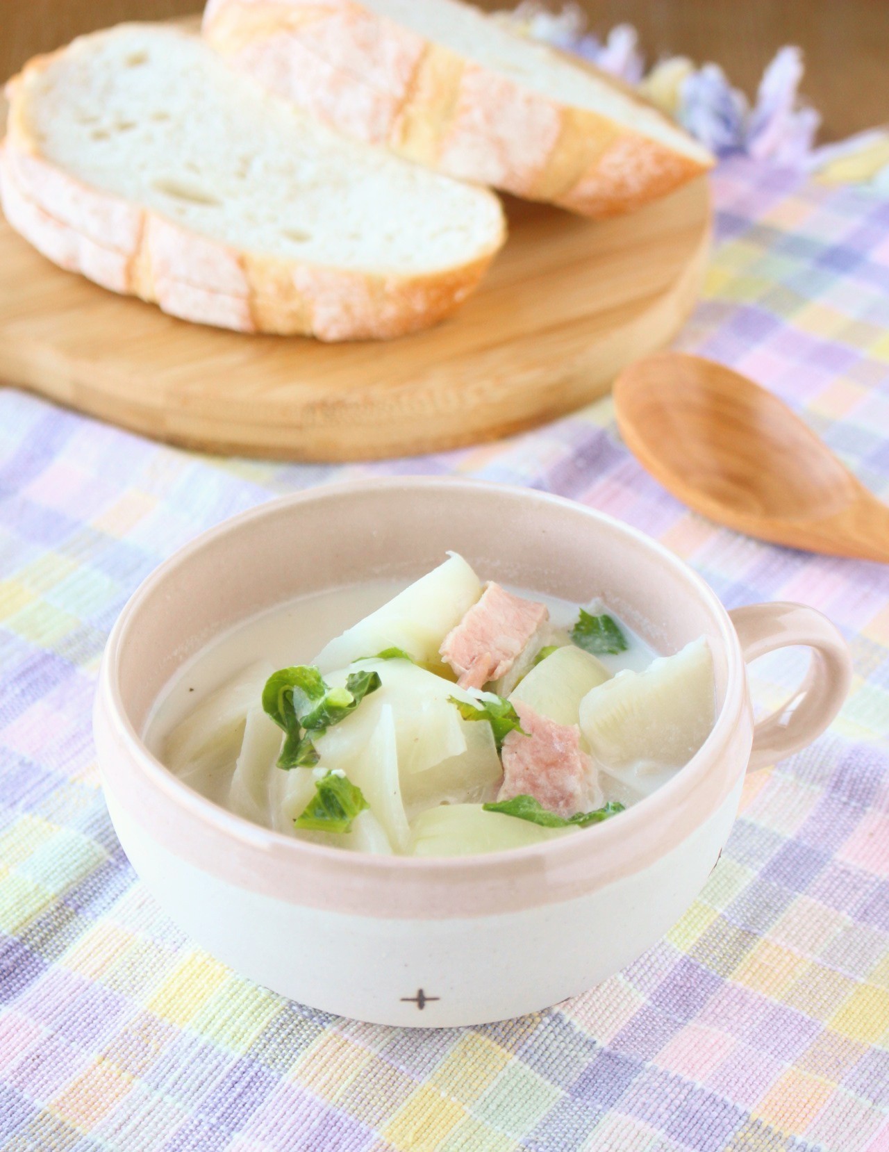 加熱するとホロっと柔らかな食感になるかぶは、優しいミルクとの相性もピッタリ。