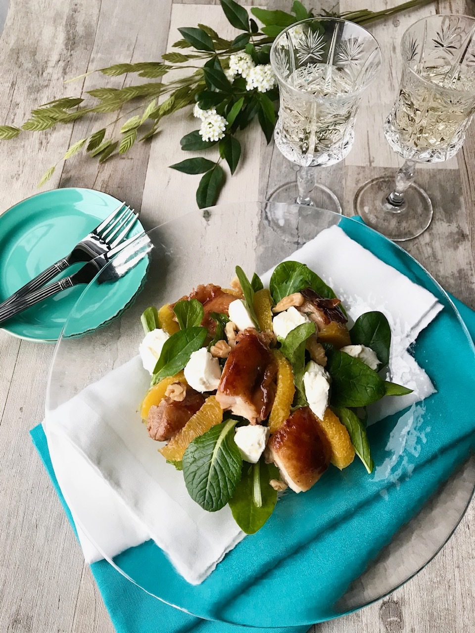 すし酢で作る照り焼きチキンのオレンジサラダ