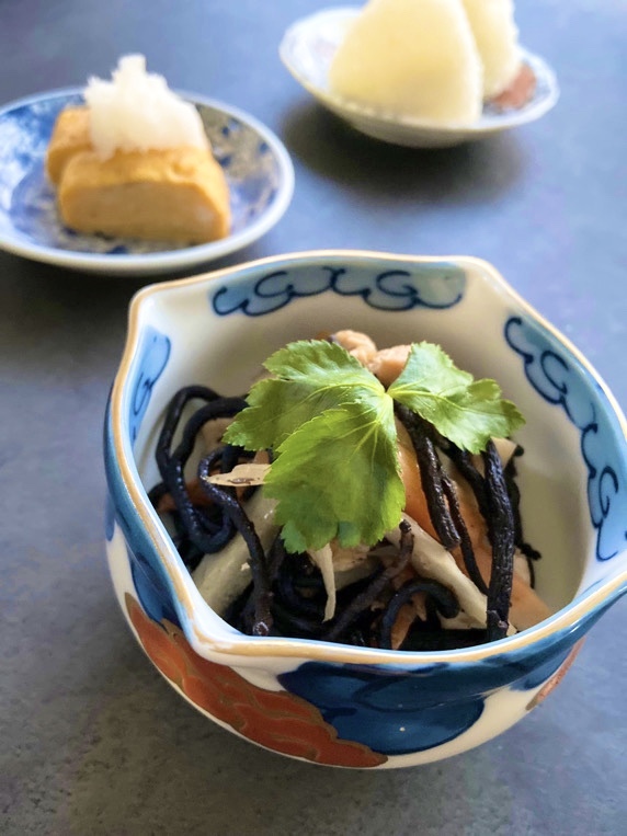 - ひじきは水に約20分つけて戻す。ふっくら柔らかくなったらざるに上げる。