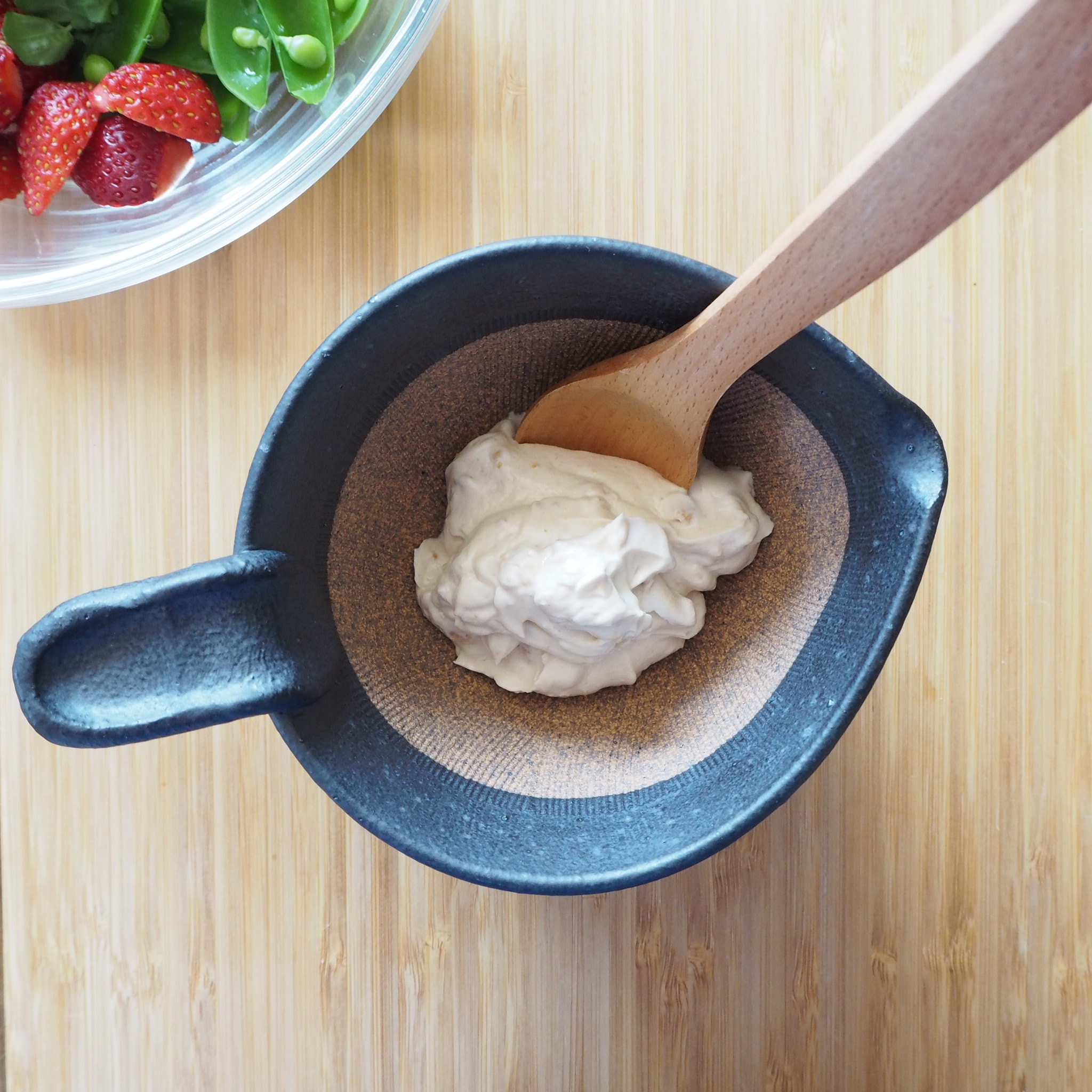 - ヨーグルトに調味料(⭐︎)を入れ、よく混ぜる。