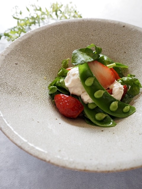 苺の甘酸っぱさと春野菜のほろ苦さを和えて、