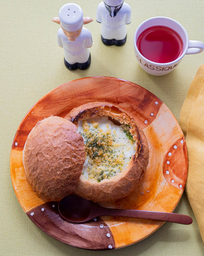 遠くから家に遊びに来る子供たちへのおもてなし場面をイメージして製作しました。子供たちの好物を集めて一品にしているのが特徴です。また、グラタンの器にフランスパンを使用している点もふたを開ける楽しみと子供の好奇心をくすぐるアクセントになっています。
