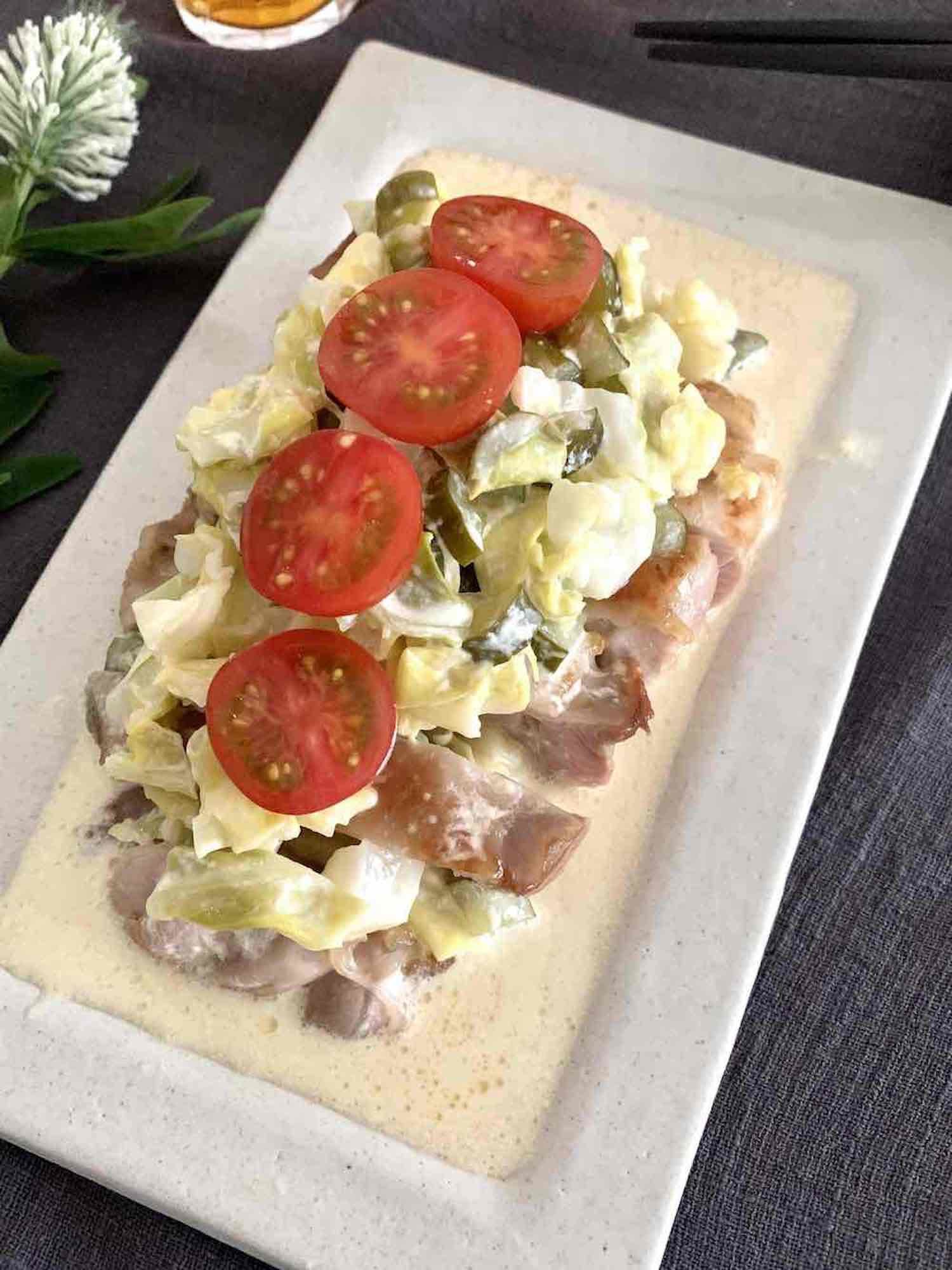 主菜と副菜を兼ねたお手軽な一品。野菜もたっぷり食べれて、ボリューム満点。すし酢を使っているので鶏肉もふっくらジューシーに。