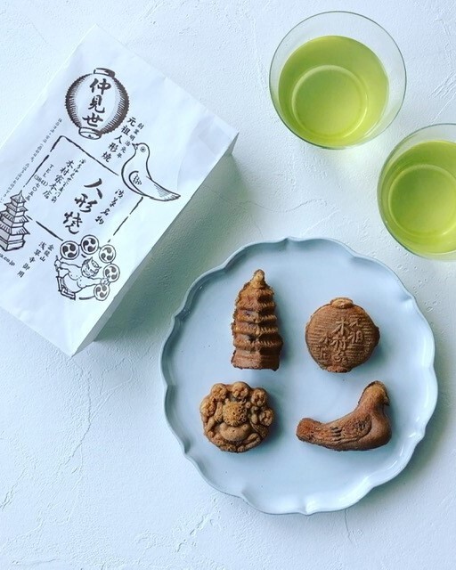 人形焼のスタイリングです。デザインが素敵なパッケージを使用しています。