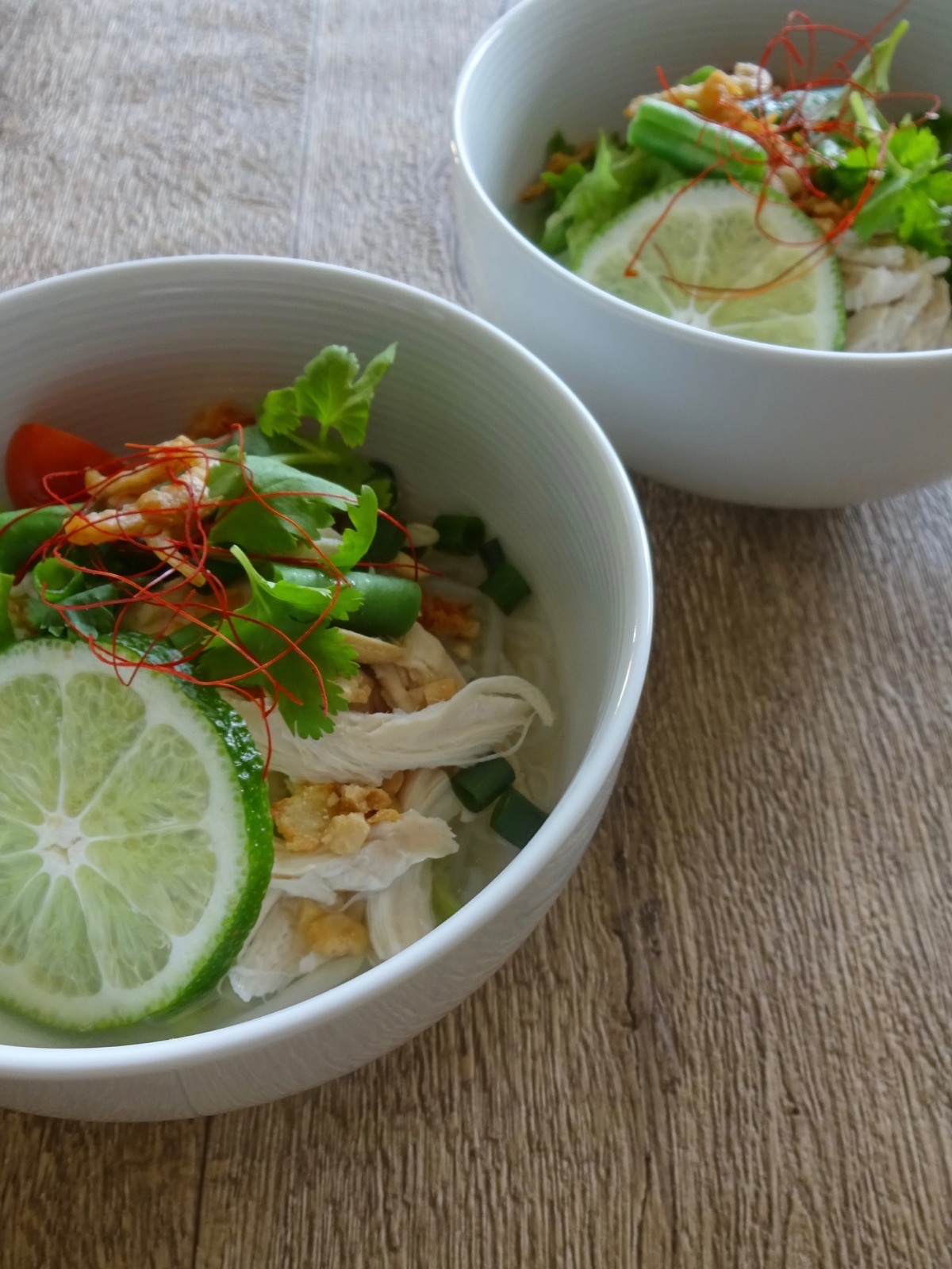 しらたきでヘルシー!鶏ささみのタイ風スープ麺
