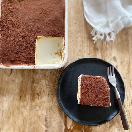 常温にしたクリームチーズに7分立てに泡立てた生クリーム、ラカント大さじ1を混ぜ合わせ、6にのせて平らにならしたら茶こしでココアをふる。 冷蔵庫で冷やし、落ち着いたら食べやすい大きさに切り分ける。