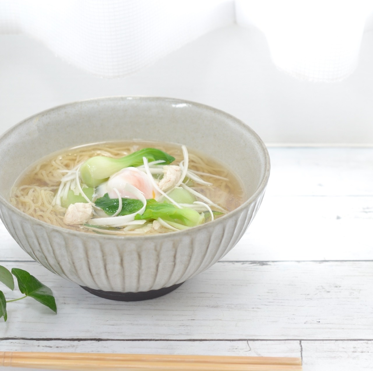 青梗菜とささみの塩ラーメン♬とろ〜り温玉のせ