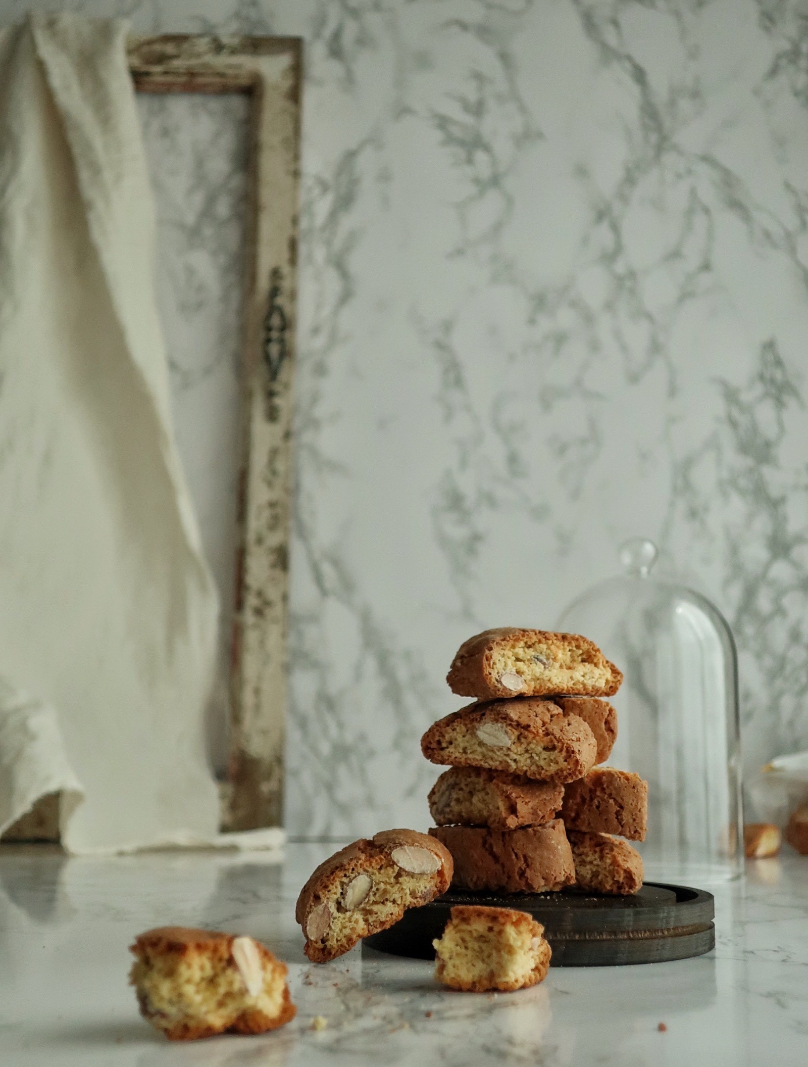 イタリアの伝統菓子であるビスコッティをスタイリングしました。全体的なトーンを揃えてゆったりとした時間を表現しました。