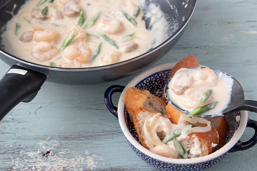 簡単にできるパングラタン。具材は自宅にある野菜でアレンジしてみてください。