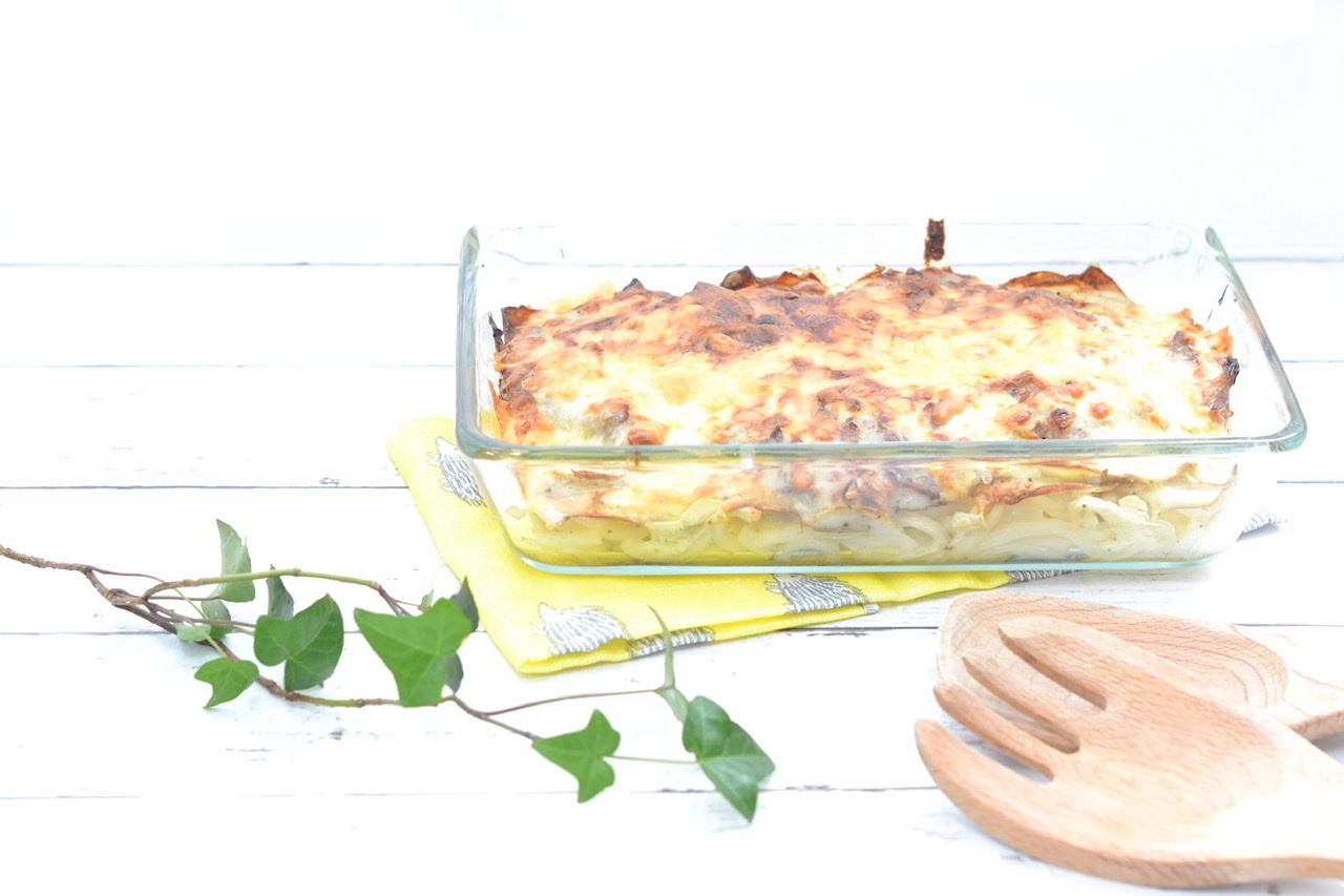 新じゃがスライスのホクホクうどんグラタン