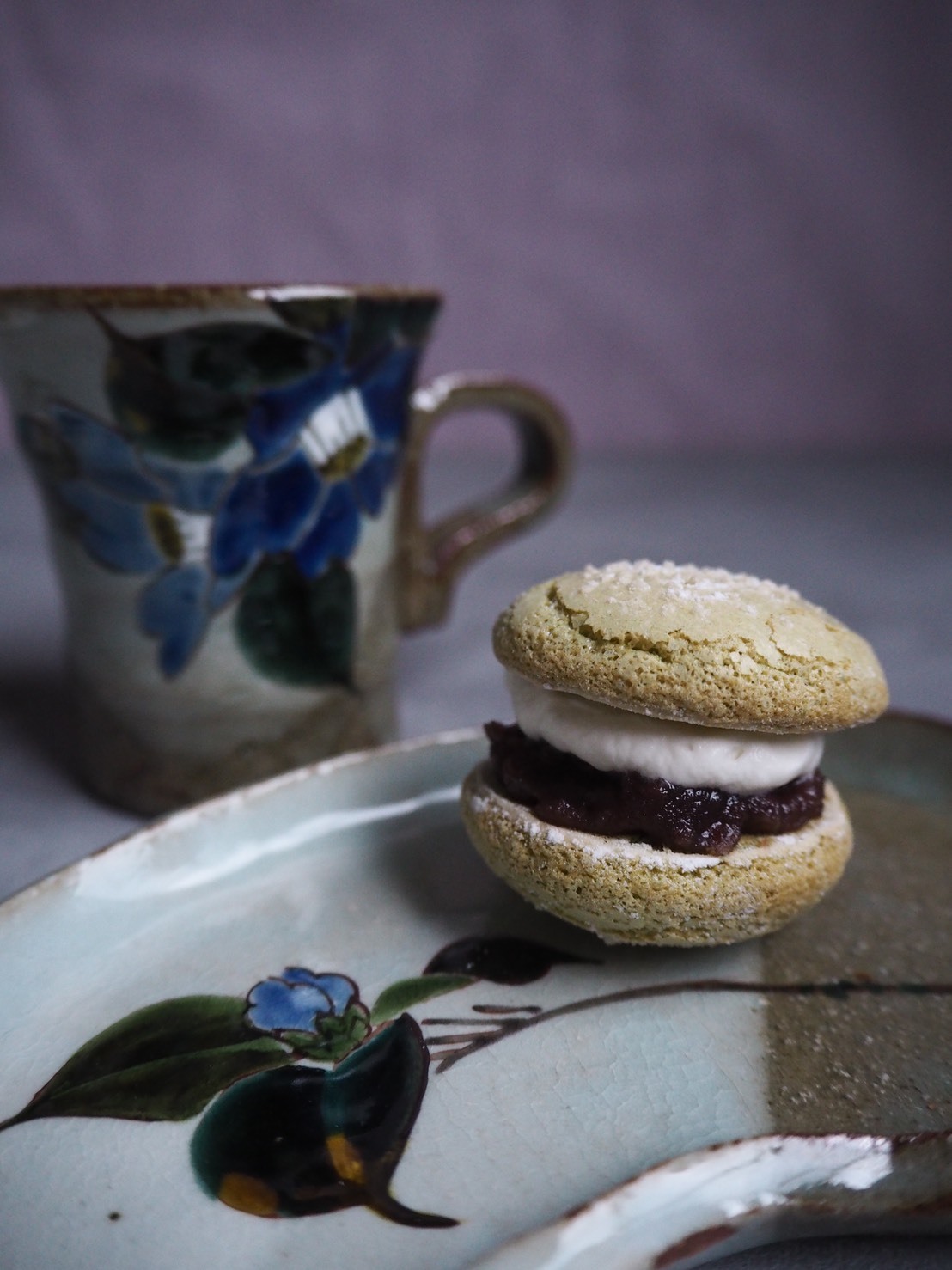 - 冷めたら、クッキングシートからはがし、ホイップクリーム、あんこをサンドして完成。