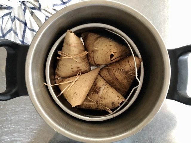 鍋に湯をしっかり沸かし、蒸し籠に入れたちまきを入れる。