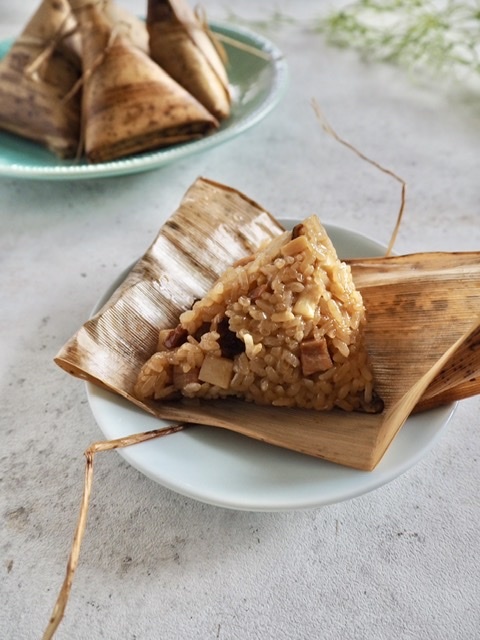 旬のたけのこをたっぷり使ったおいしい中華おこわを詰め込んでちまきを作りました。