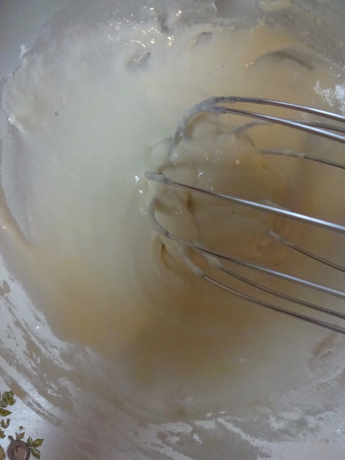 【下準備】小麦粉に炭酸水を注いで混ぜ合わせたら粉チーズを加えてさらに混ぜ合わせる。