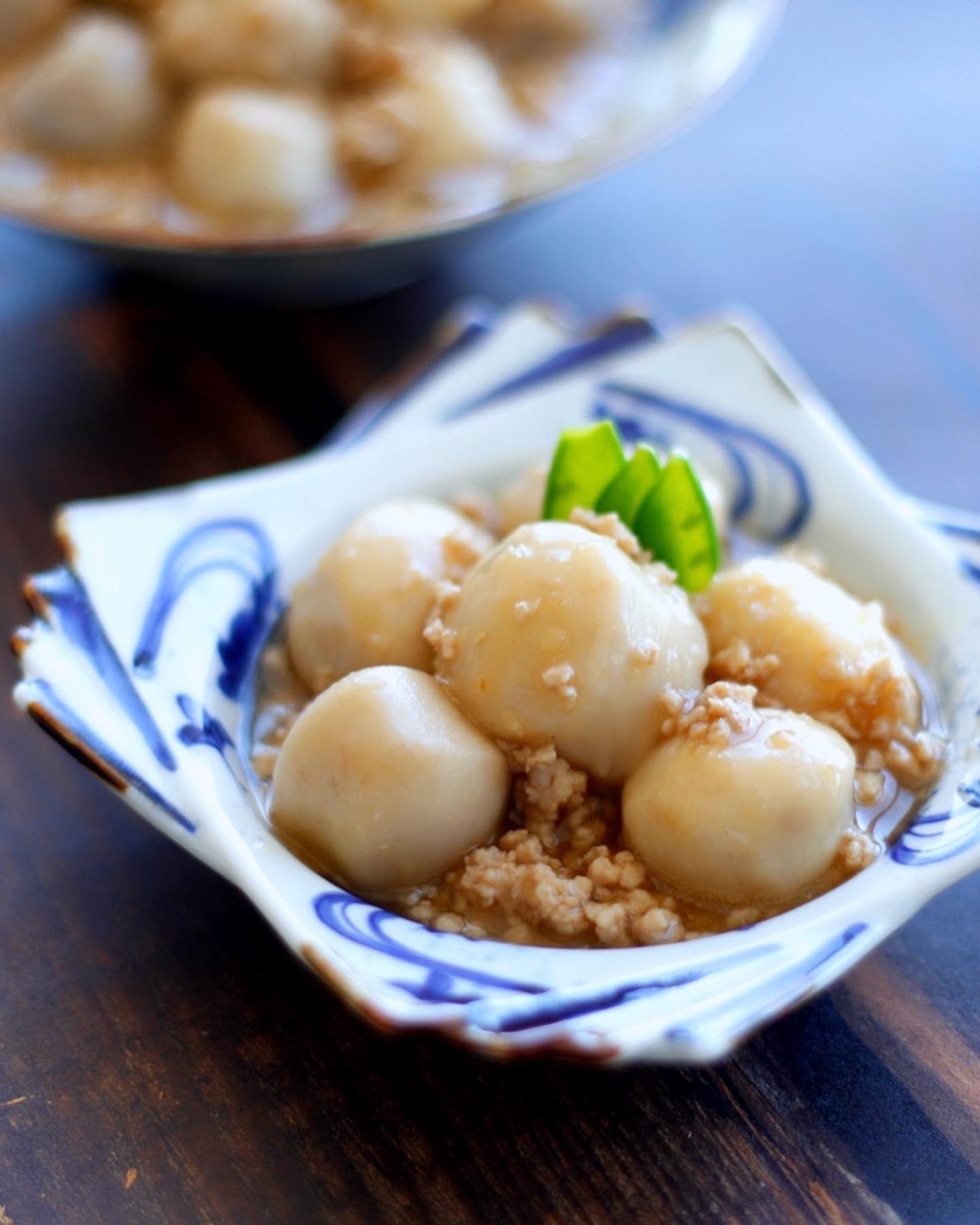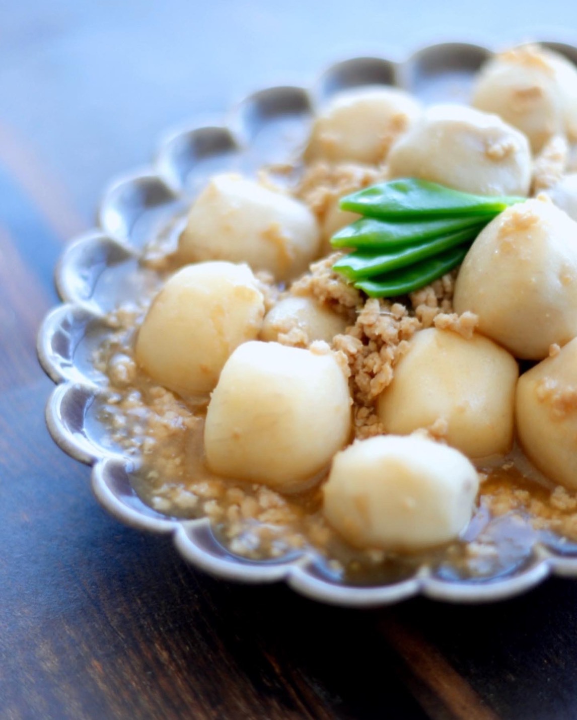 芋の煮っころがしも、鶏そぼろを合わせることでグッと旨味がアップ!