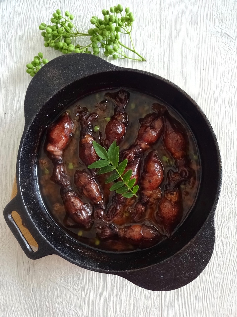 - 生ホタルイカと実山椒の和風アヒージョ【スキレット使用】