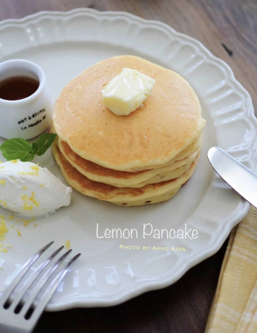 米粉で作りましたグルテンフリーのパンケーキです。レモンの香りが爽やかです。