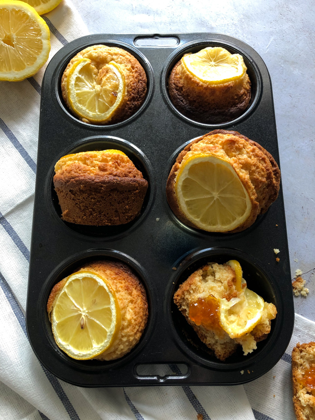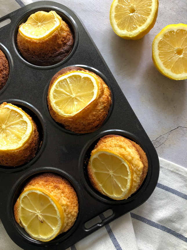 - 3を型に入れて、スライスしたレモンをのせ、オーブンで20分程焼く。