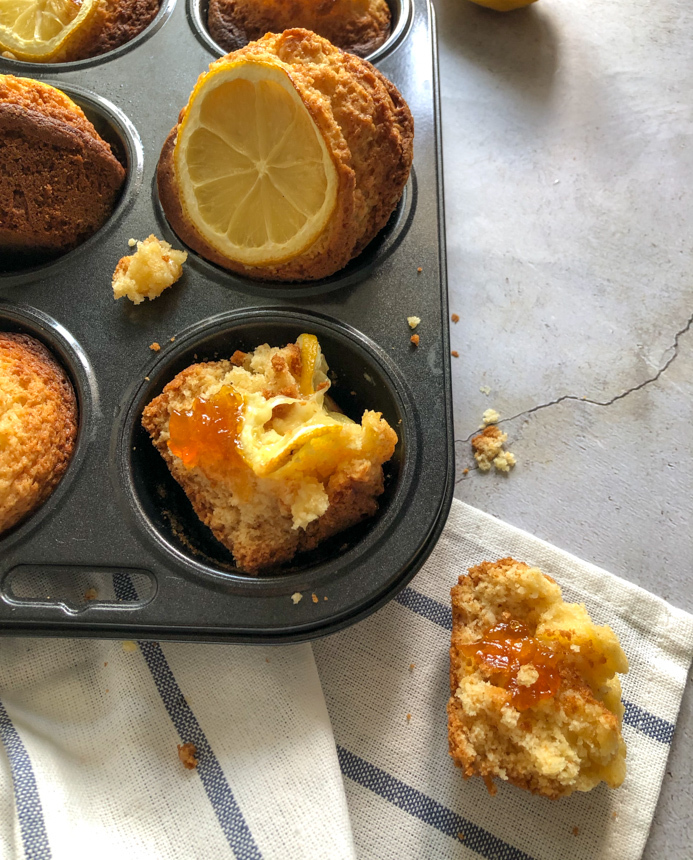 ホットケーキミックスで作るレモンマフィン。バターではなく、こめ油を使いました。混ぜて焼くだけの簡単レシピです。