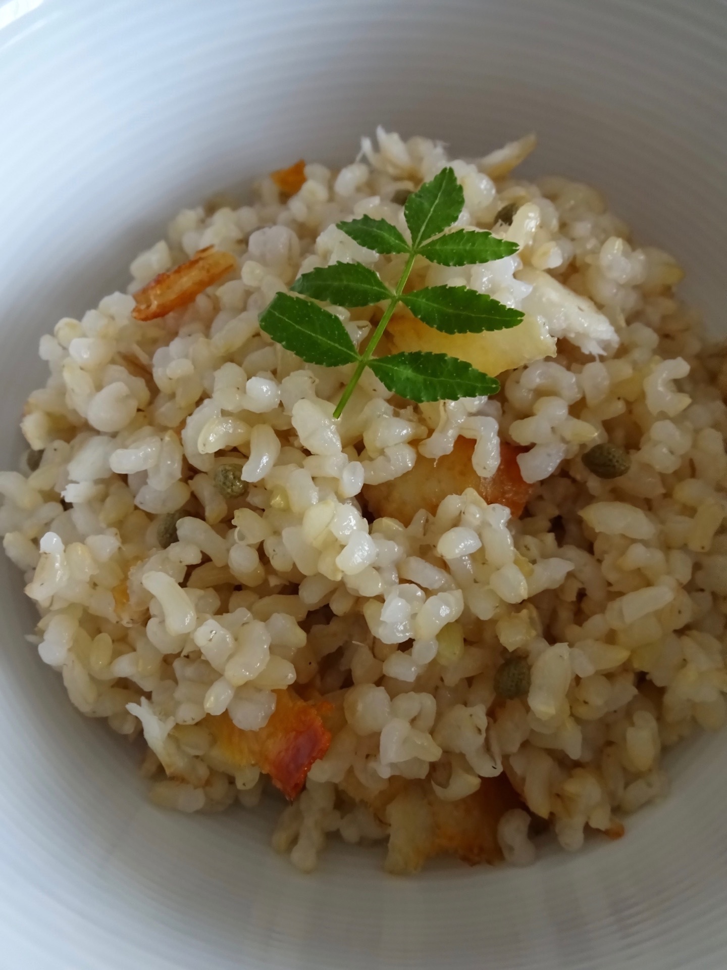 鯛の中落ち焼きと実山椒の炊き込みご飯【玄米使用】