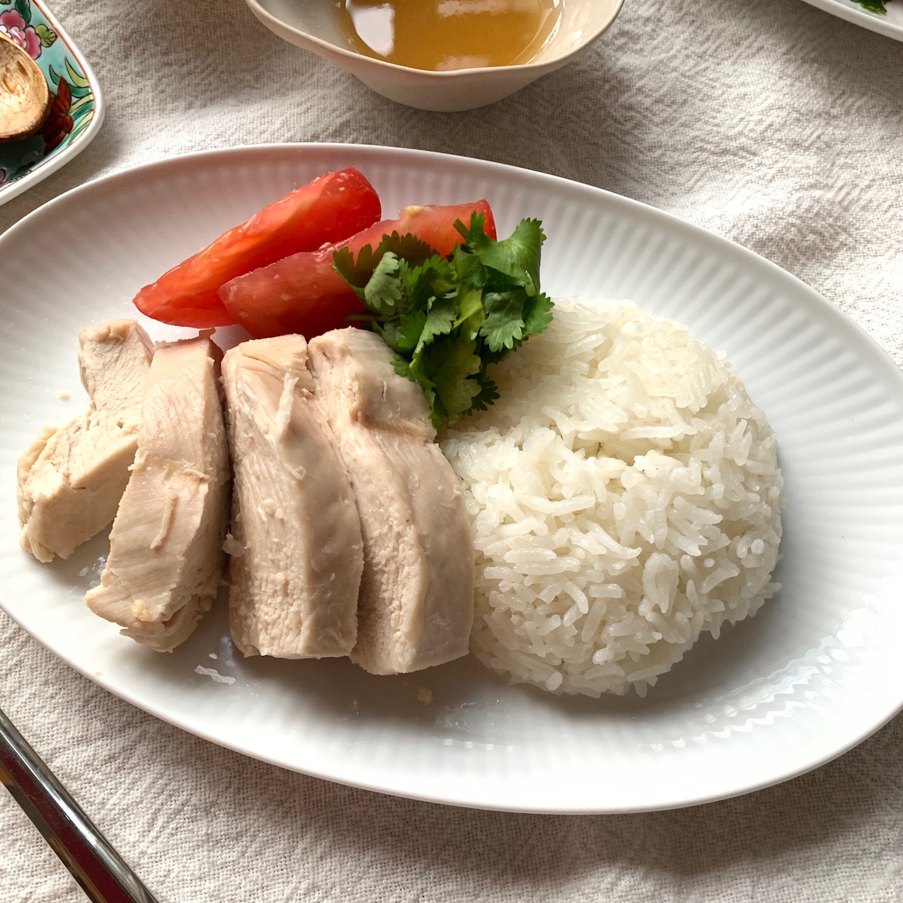 - 【炊飯器調理】鶏ムネのシンガポールチキンライスと、やみつき2種だれ