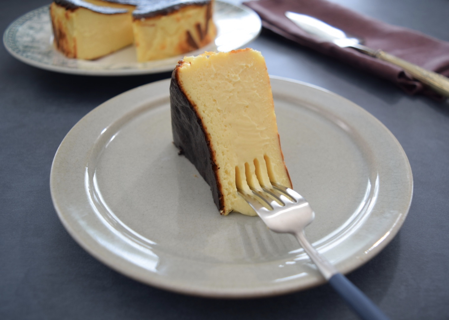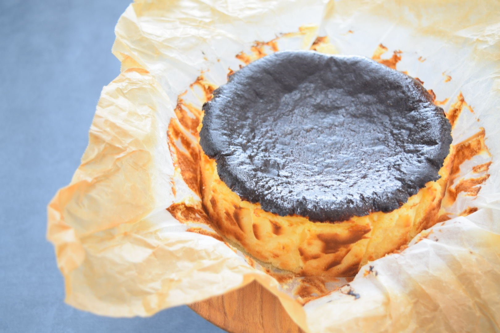 - ゴムベラで型に流し入れる。230℃で25分〜30分表面が黒くなるまで焼く。(黒くなりすぎるようなら、途中アルミホイルをかける)型のまま粗熱を取り、冷めたら冷蔵庫でしっかり冷やす。