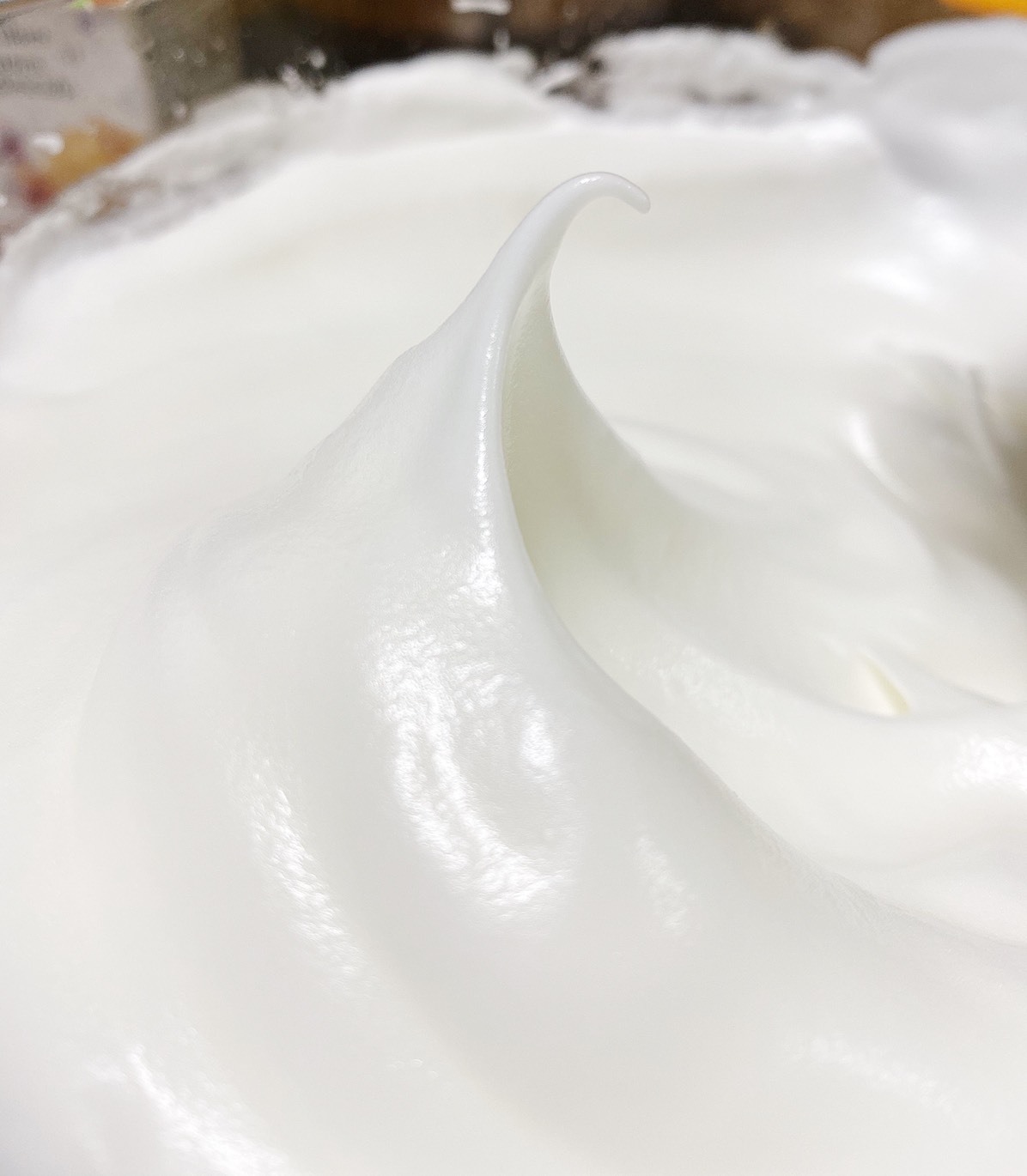 ・卵白を立てすぎてしまわないように柔らかいツノが一本立つくらいまで泡立ててください。