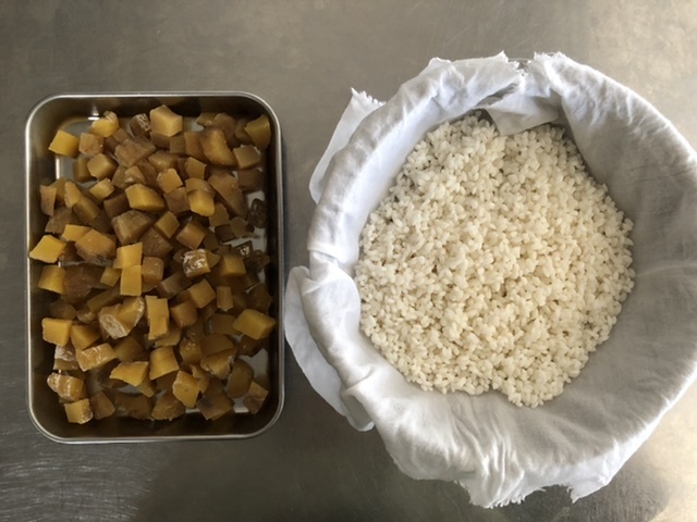 ●もち米は洗って吸水し、水気を切っておく。